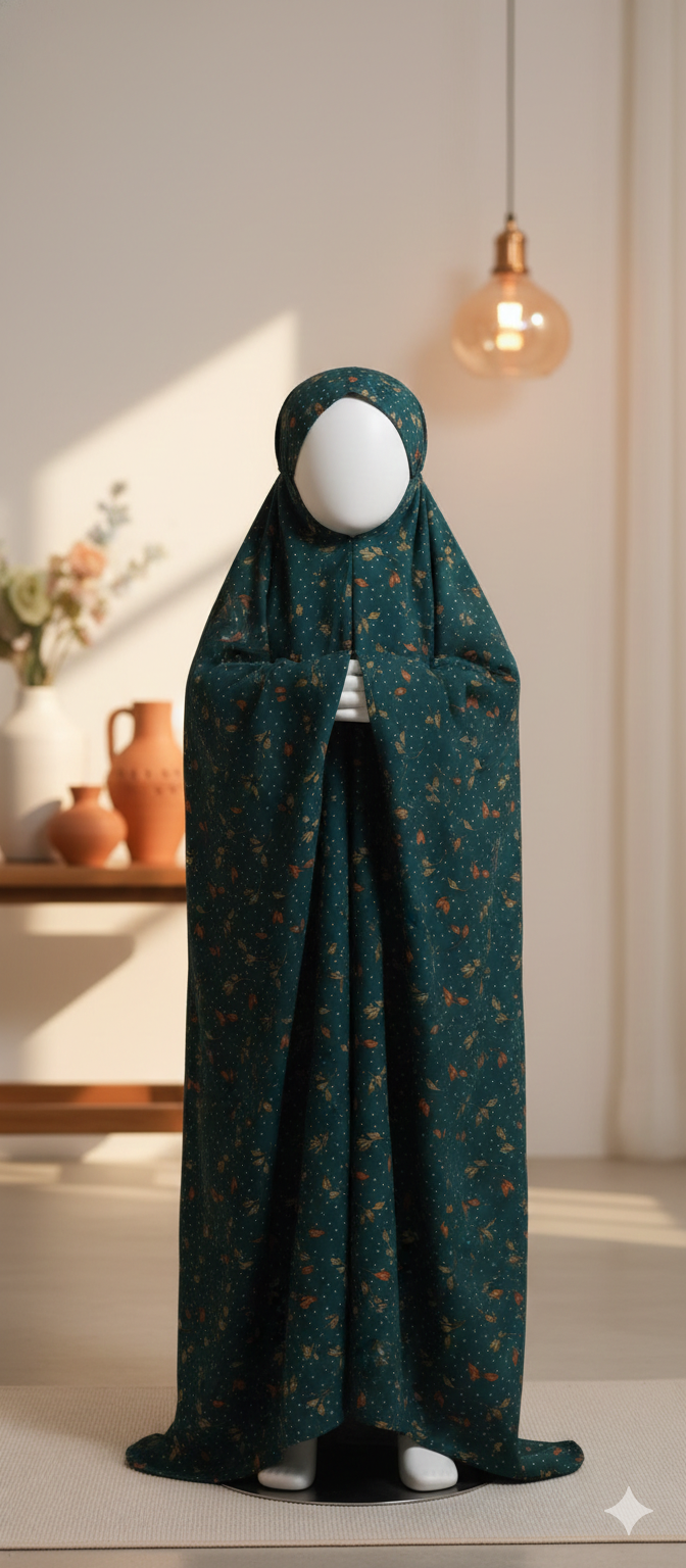 The chadar offers full upper-body coverage including head, shoulders, and arms, ensuring proper modesty while praying. Its loose and flowy fit allows easy movement and a peaceful prayer experience. The fabric is non-transparent, skin-friendly, and suitable for all seasons.